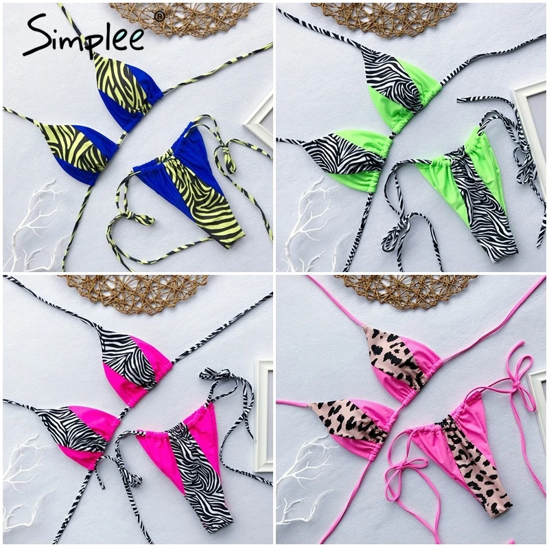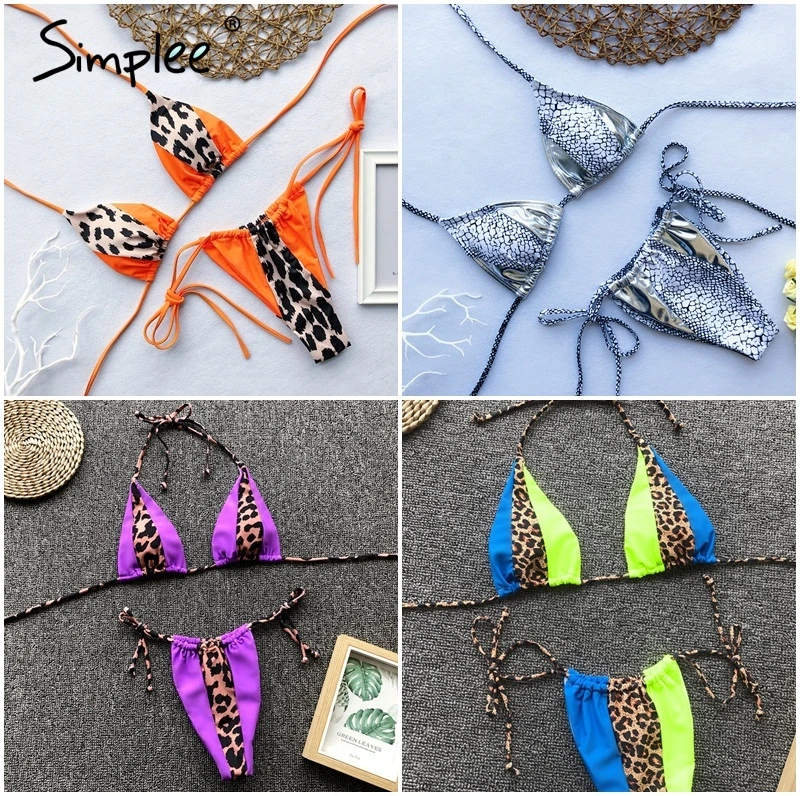 Summer Sexy leopard print two-pieces women swimsuit Spaghetti strap summer swimsuit Lace up beach holiday female bikini 2019